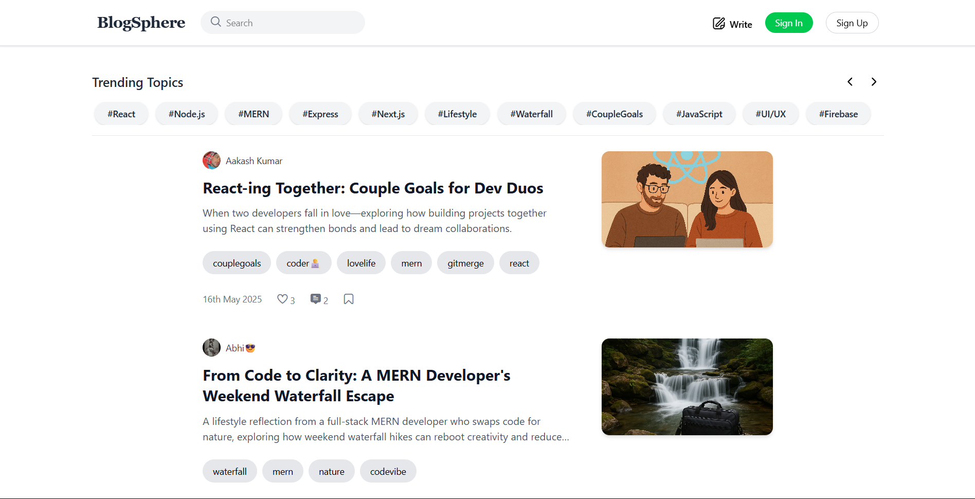 Secure login with Google OAuth, JWT authentication, and email verification. User profiles with Cloudinary-powered image upload and customization. Create, edit, and publish blogs using rich EditorJS with media support. Interactive features: likes, nested comments, and follower system to boost engagement. Optimized backend architecture following MVC pattern for maintainability. Responsive UI ensuring seamless experience across devices.